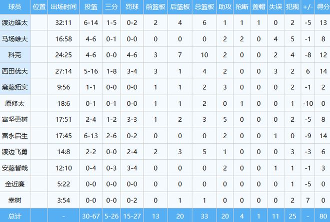 日本男篮数据如下: